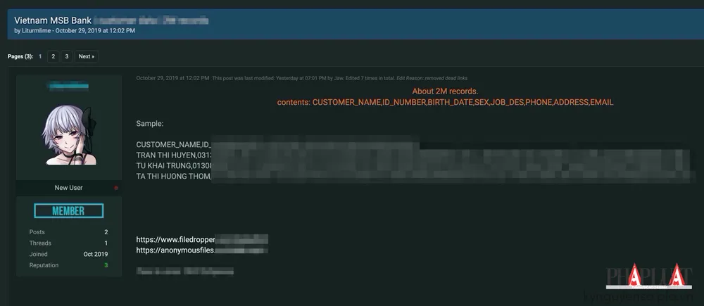 Trước đó, vào tháng 4-2018, diễn đàn này cũng từng chia sẻ dữ liệu của hơn 160 triệu Zing ID của VNG.