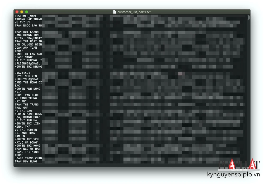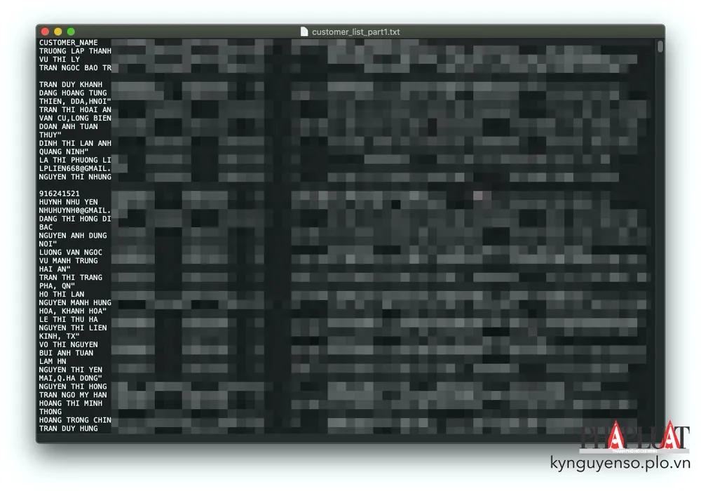Khi thử tải về file dữ liệu, PVPLO thấy bên trong có rất nhiều thông tin bao gồm tên khách hàng, ngày tháng năm sinh, giới tính, chức vụ, số điện thoại, địa chỉ email…