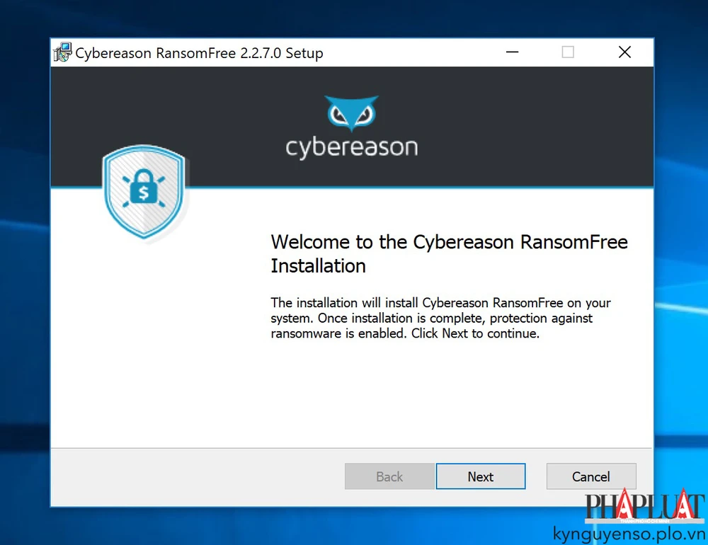 RansomFree có cách thức hoạt động tương tự như RansomWhere nhưng chỉ dành riêng cho hệ điều hành Windows. Đầu tiên, bạn hãy tải về ứng dụng tại địa chỉ https://ransomfree.cybereason.com/, sau đó cài đặt theo các bước hướng dẫn.