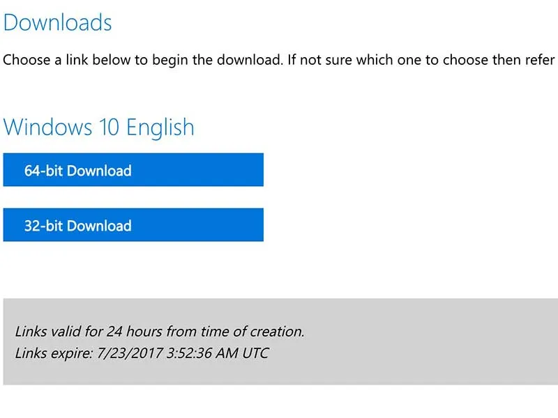 Để tải Windows 10, bạn có thể sử dụng công cụ Media Creation Tool của Microsoft tại địa chỉ https://goo.gl/OHcUIP, lựa chọn phiên bản, ngôn ngữ tương ứng và nhấn Confirm để xác nhận. Lúc này, người dùng sẽ được cung cấp liên kết để tải về phiên bản Windows 10 mới nhất ở thời điểm hiện tại. Nếu muốn tải các phiên bản cũ hơn, bạn có thể truy cập vào trang web http://windowsiso.net/.