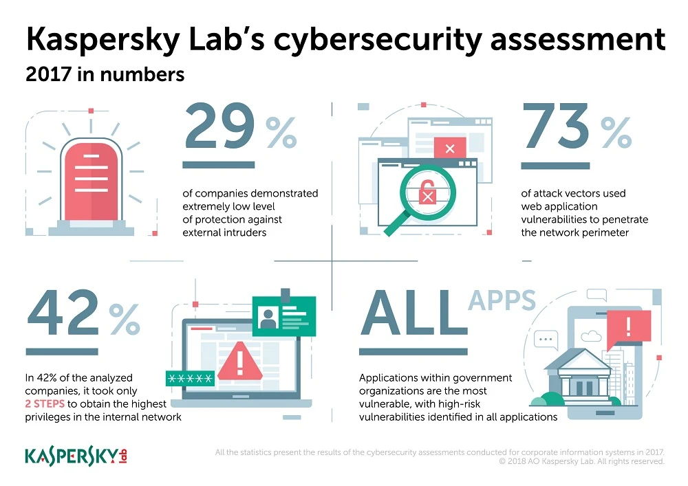 Ông Sergey Okhotin, chuyên viên phân tích bảo mật cấp cao của Kaspersky Lab, cho biết: "Thực hiện các phân tích định lượng về biện pháp bảo mật đơn giản như lọc mạng và mật khẩu sẽ làm tăng đáng kể độ bảo mật mạng. Ví dụ, một nửa số vector tấn công có thể được ngăn chặn bằng cách hạn chế quyền truy cập vào các giao diện quản lý".