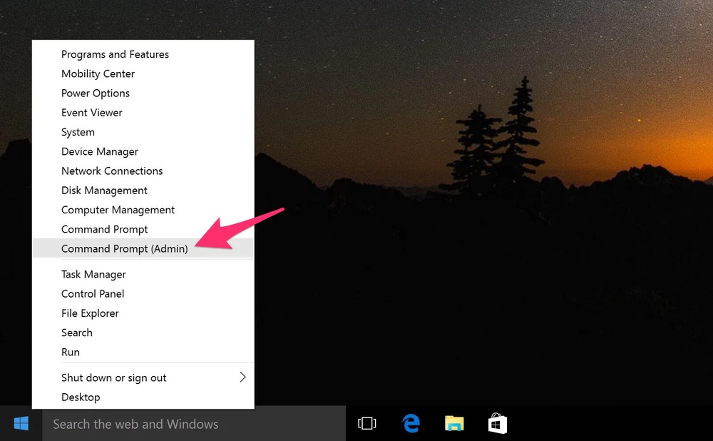 - Bước 1: Đầu tiên, bạn hãy gõ tổ hợp phím Windows + X và nhấp vào tùy chọn Command Prompt (Admin).