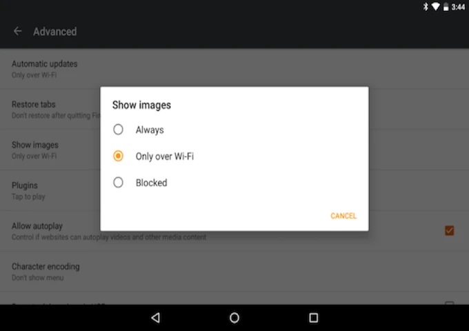 Đầu tiên, phiên bản Firefox 45 được Mozilla bổ sung tính năng chỉ tải ảnh khi người dùng yêu cầu. Khi bật tính năng này tại mục Settings > Advanced > Show Images, Firefox sẽ chỉ tải các nội dung text khi người dùng lướt web, hình ảnh chỉ được tải khi người dùng nhấn và giữ vào một ảnh bất kỳ.