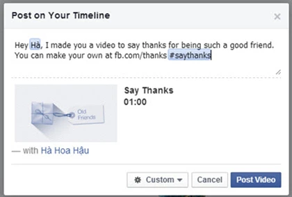 Một đoạn clip ngắn từ 30 giây đến 1 phút kèm theo những hình ảnh và trạng thái (status) sẽ làm lời cảm ơn thú vị gởi đến bạn bè.