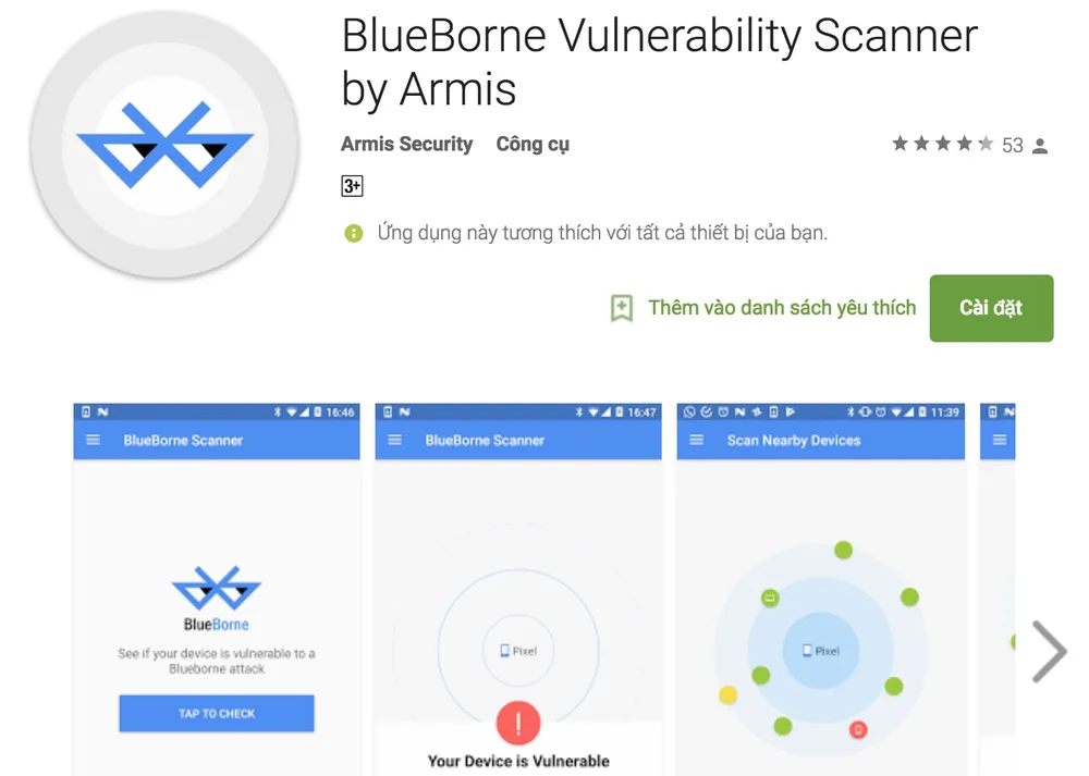 Trong quá trình chờ đợi bản vá lỗi từ nhà sản xuất, bạn có thể cài đặt ứng dụng BlueBorne Vulnerability Scanner by Armis cho smartphone Android tại địa chỉ https://goo.gl/aH55yu để kiểm tra thiết bị đang sử dụng có dễ bị tấn công. Nếu có, người dùng nên hạn chế sử dụng Bluetooth trong trường hợp không cần thiết.