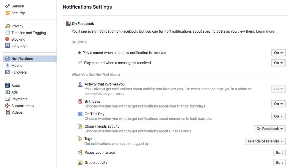 - Bước 1: Đầu tiên, bạn hãy truy cập vào https://www.facebook.com/settings, chọn mục Notifications trong menu bên trái.