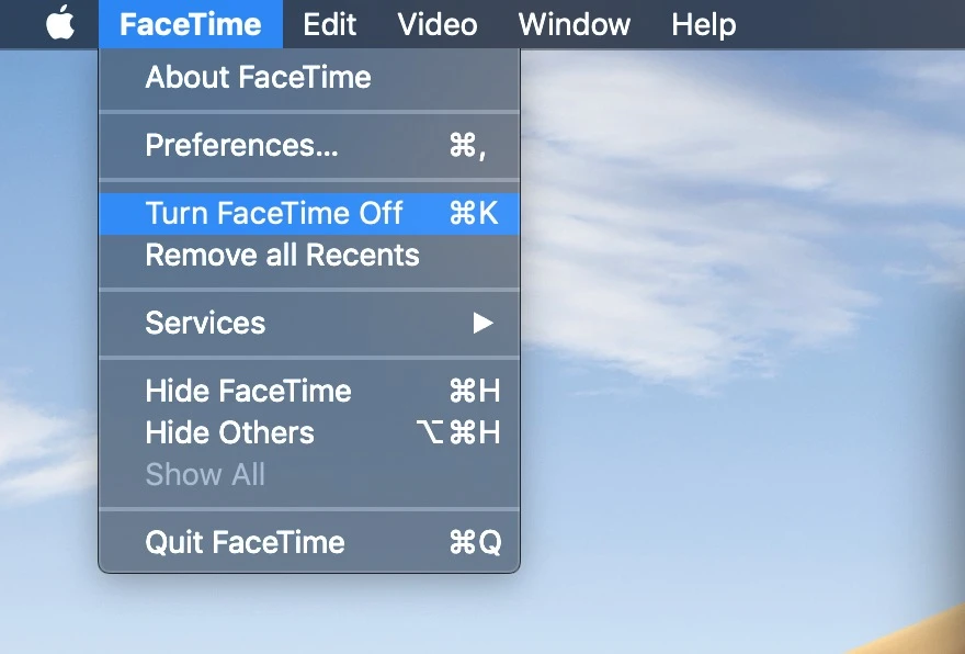 Tương tự, đối với macOS, người dùng cần mở ứng dụng FaceTime, sau đó bấm vào menu FaceTime ở góc trên bên trái và chọn Turn FaceTime Off (hoặc nhấn tổ hợp phím command + K).