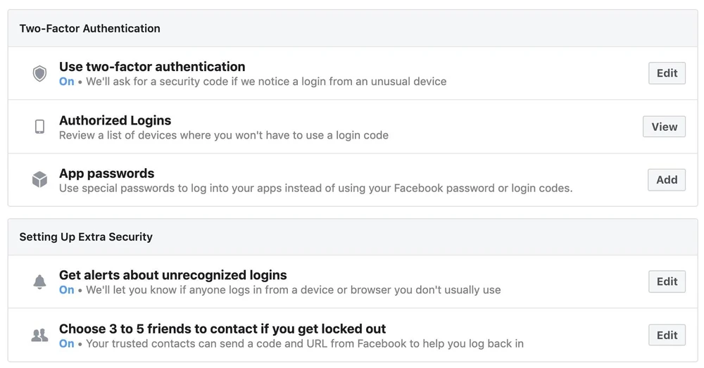 - Kích hoạt bảo mật 2 lớp và thiết lập danh sách bạn bè đáng tin cậy trong phần Settings (cài đặt) > Security & Login (bảo mật & đăng nhập) > Use two-factor authentication (sử dụng xác thực hai lớp) và làm theo các bước hướng dẫn cho đến khi hoàn tất. Bạn đọc quan tâm có thể tham khảo bài viết ở ngay bên dưới hoặc tìm kiếm trên Google theo cú pháp “cách kích hoạt bảo mật 2 lớp trên Facebook/Google + kynguyenso”.
