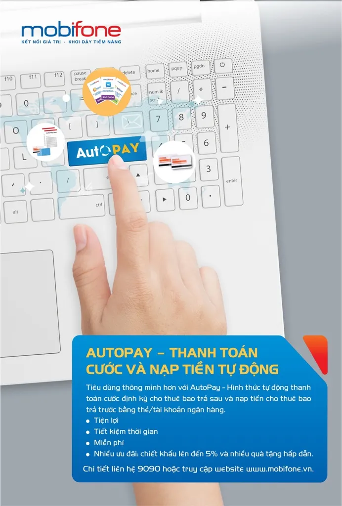 Với các thuê bao trả sau, MobiFone cung cấp sáu lựa chọn thanh toán tự động vào các ngày 5, 6, 15, 16, 25, 26. Hằng tháng, vào đúng ngày khách hàng lựa chọn, hệ thống sẽ tự động trừ toàn bộ nợ cước của thuê bao vào thẻ/tài khoản thanh toán khách hàng đã đăng ký. Nếu như vào ngày thực hiện thanh toán, thẻ/tài khoản của khách hàng không đủ số dư, MobiFone sẽ tự động thực hiện lệnh thanh toán vào ngày thứ 10 kế tiếp. Như vậy khách hàng không còn lo lắng chậm thanh toán tiền cước hằng tháng ngay cả khi chẳng may hết tiền, vượt hạn mức trong thẻ/tài khoản tại ngày khách hàng đã đăng ký.