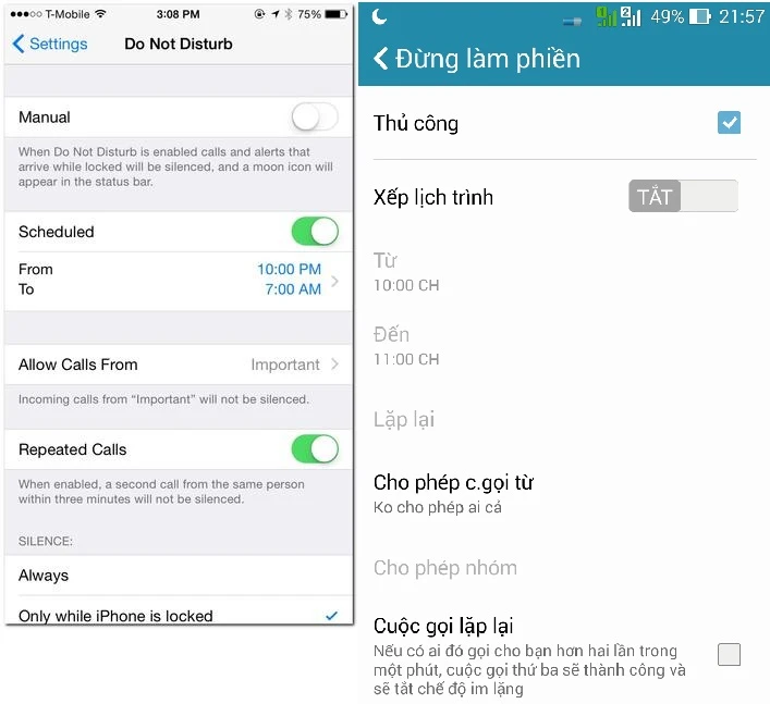 Tính năng Do Not Disturb trên iOS và Android