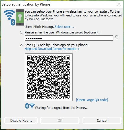 - Bước 3: Quay trở lại giao diện chính, bạn nhấn vào liên kết Setup authentication key để cài đặt chìa khóa xác thực. Tại phần Please enter the user Windows password, bạn nhập vào mật khẩu đăng nhập của máy tính để ứng dụng tự động tạo mã QR.