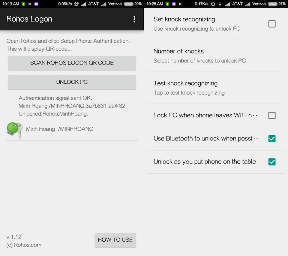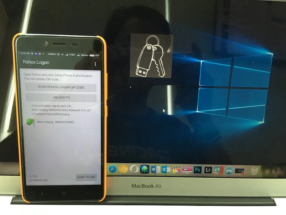 - Bước 5: Kể từ bây giờ, mỗi khi máy tính hiển thị khung đăng nhập, bạn chỉ cần mở ứng dụng Rohos trên smartphone và chọn Unlock PC để mở khóa. Lưu ý, cả hai thiết bị phải kết nối cùng một mạng Wi-Fi.