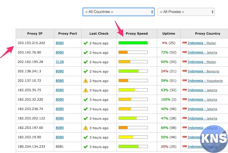 - Bước 3: Khi hoàn tất, người dùng cần phải đổi Proxy cho máy bằng cách truy cập vào địa chỉ https://goo.gl/3x4xSp, sau đó, bạn hãy sao chép lại một Proxy IP và Port có tốc độ cao, lưu ý Proxy phải thuộc quốc gia Indonesia.