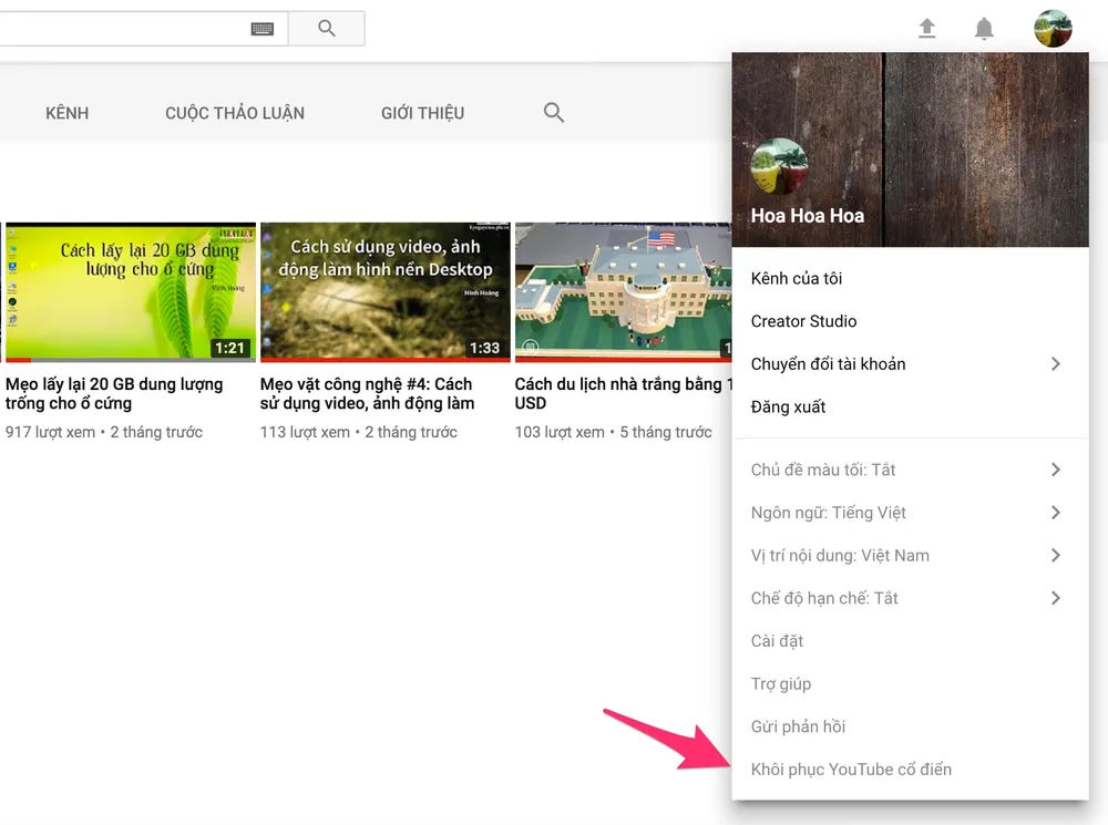 Chuyển YouTube về giao diện cũ. Ảnh: MINH HOÀNG
