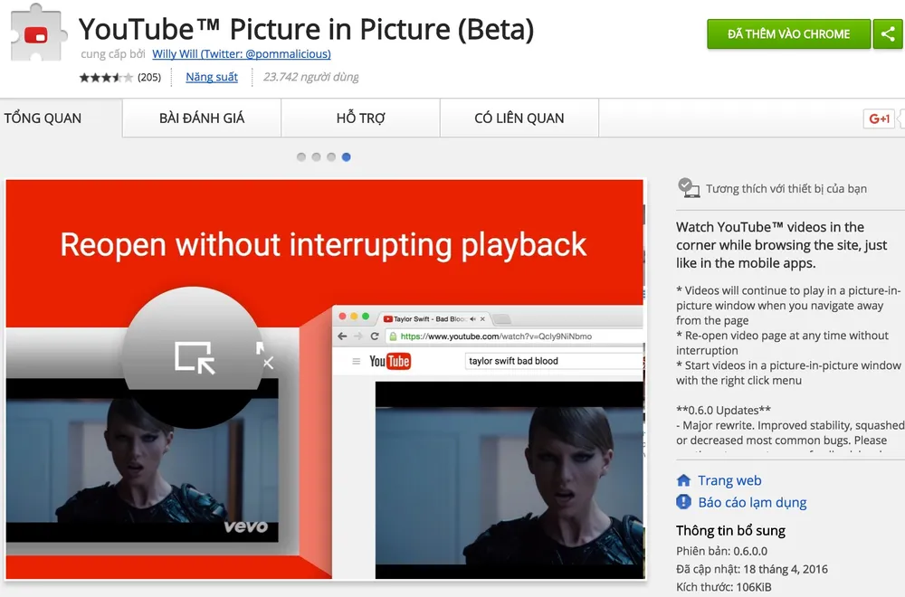 Hiện tại YouTube Picture in Picture (Beta) vẫn đang trong giai đoạn thử nghiệm, do đó tiện ích vẫn còn thiếu sót khá nhiều tính năng như không thể thay đổi kích thước cửa sổ, vị trí… Hy vọng nhà phát triển sẽ cải thiện hoặc bổ sung nhiều tính năng mới trong các phiên bản kế tiếp.
