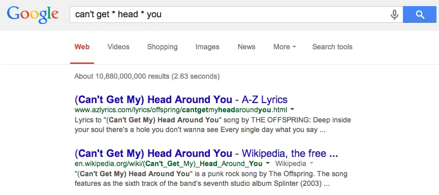 Nếu đang vội hoặc không nhớ ra từ cần tìm kiếm, hãy dùng dấu hoa thị (*) để thay thế. Google sẽ tự động điền vào chỗ trống cho bạn.