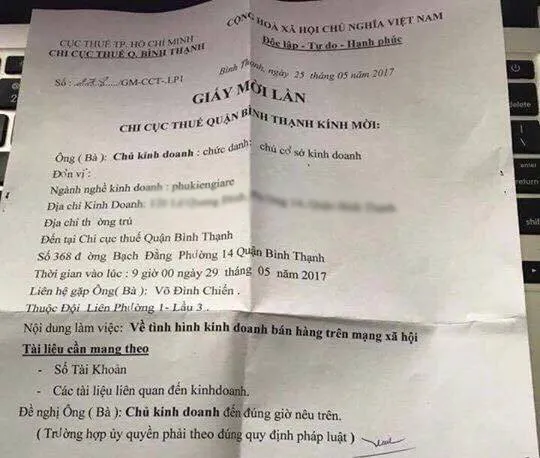 Một số người dùng kinh doanh trên Facebook ở khu vực Quận Bình Thạnh đã nhận được thư mời của Chi cục thuế nhằm bàn về tình hình kinh doanh bán hàng trên mạng xã hội.