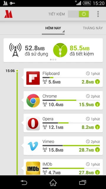 Cả hai trình duyệt trên đều hiển thị đầy đủ các thông số, cho phép bạn biết được mình đã tiết kiệm được bao nhiêu dung lượng khi sử dụng tính năng nén dữ liệu. Không giống như các trình duyệt chỉ nén dữ liệu của riêng mình, phần mềm Opera Max còn có khả năng nén toàn bộ dữ liệu trên các ứng dụng khác.