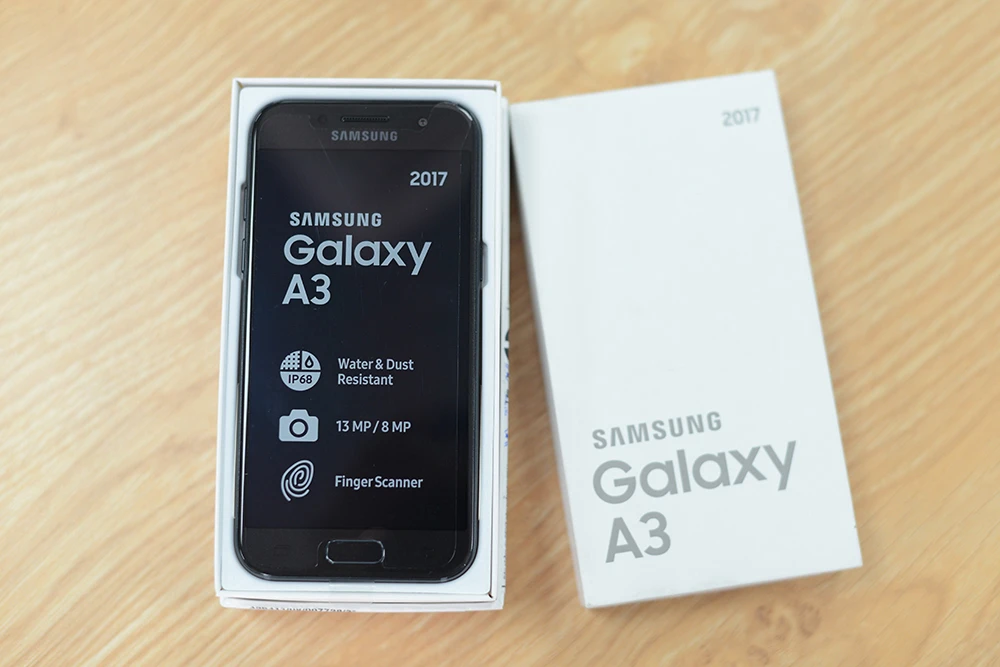 Galaxy A3 (2017) sở hữu kiểu dáng sang trọng như những người đàn anh A5, A7, được trang bị hai mặt kính cong 3D và khung viền kim loại cho cảm giác cầm nắm chắc chắn. Sản phẩm sử dụng vi xử lý lõi tám, 3 GB RAM, bộ nhớ trong 16 GB (hỗ trợ thẻ nhớ gắn ngoài) và được bán ra với hai màu đen, vàng.