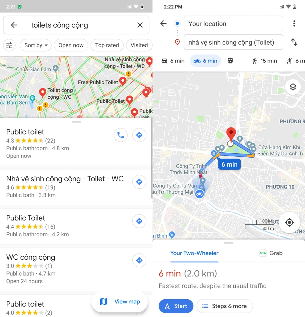 Cách tìm nhà vệ sinh công cộng bằng Google Maps. Ảnh: MINH HOÀNG
