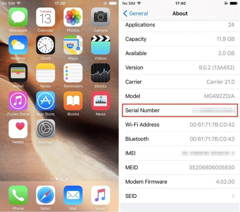 Thông thường, Serial Number sẽ được in trên nắp hộp và bên trong phần cài đặt của thiết bị. Người dùng khi mua điện thoại có thể kiểm tra xem hai dãy số này có trùng nhau không bằng cách vào Settings (cài đặt) > About phone (thông tin điện thoại) > Status (trạng thái).