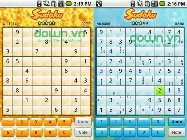 Sudoku For Android là một game trí tuệ được rất nhiều người yêu thích. Nhiệm vụ của bạn là phải điền số (Từ 1 đến 9) vào các ô mà vẫn đảm bảo rằng không trùng lặp số theo hàng ngang, hàng dọc cũng như nhóm 9 ô.