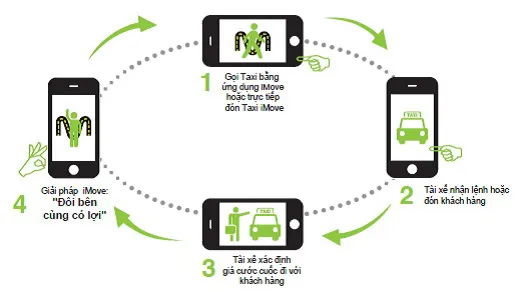 iMove là ứng dụng được cài đặt trên các thiết bị di động, với các hệ điều hành phổ biến hiện nay như IOS, Windows Phone, Androd mang đến cho người tiêu dùng sự an tâm khi đi taxi thông qua các bước đơn giản là gười dùng gọi taxi thông qua ứng dụng iMove, tài xế taxi nhận lệnh đón khách, xác định cước phí với khách hang; đón khách và thanh toán cước phí.