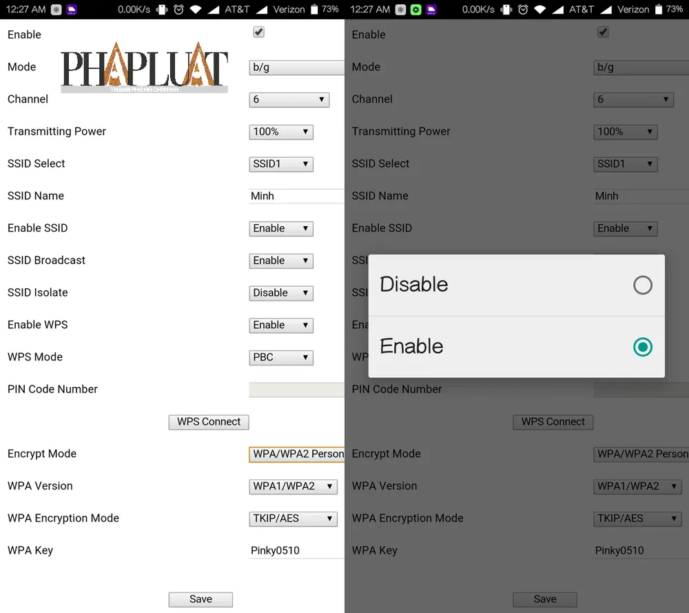 Vô hiệu hóa tên mạng Wi-Fi cũng như chế độ WPS. Ảnh: M.HOÀNG