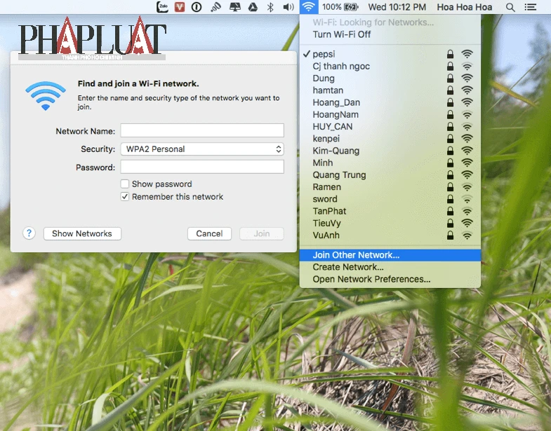 Cuối cùng, nếu đang sử dụng Mac, bạn chỉ cần nhấn vào biểu tượng Wi-Fi > Join Other Network và nhập vào các thông số tương tự.