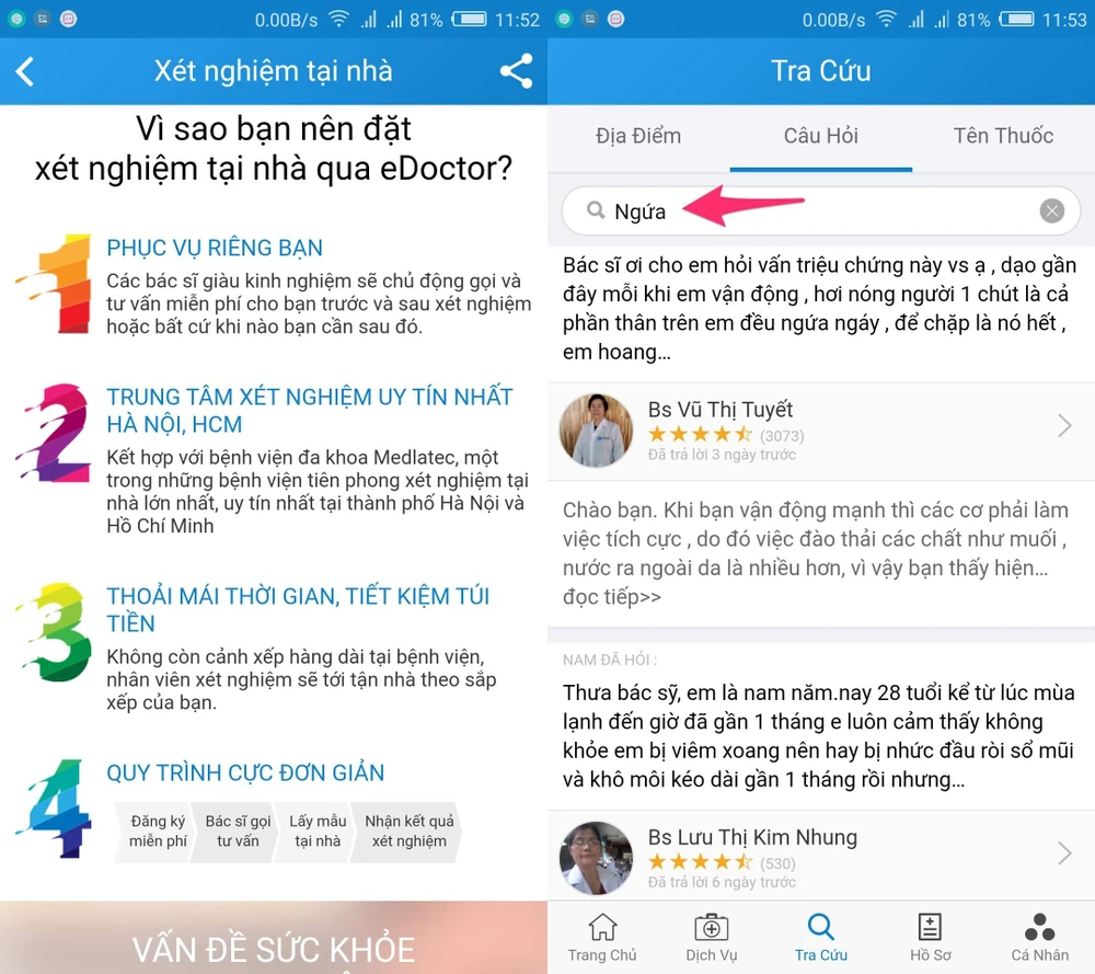 Khi chuyển sang phần Tra cứu, người dùng có thể tìm kiếm địa điểm các phòng khám, bệnh viện… tìm kiếm các câu hỏi của những người dùng khác hoặc tra cứu tên thuốc, công dụng và cách sử dụng. Nhìn chung, những thông tin này khá hữu ích, cung cấp cái nhìn tổng quan về sức khỏe.