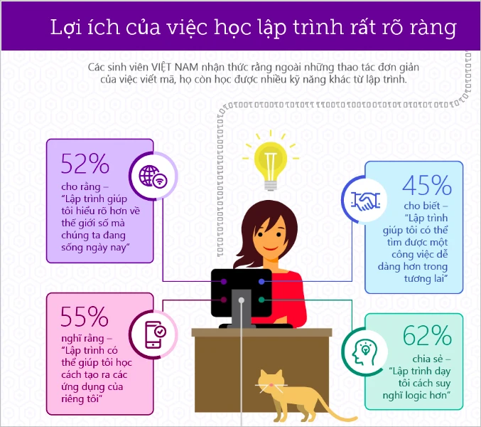 “Để hỗ trợ các giáo viên và học sinh sinh viên tiếp tục triển khai xu hướng tích cực này, Microsoft đã duy trì chiến dịch #WeSpeakCode. Dù sinh viên có kiến thức lập trình ở mức độ nào, mới học 1 giờ, đã học 1 học kỳ, hay đã chuyên sâu ở mức độ nhiều năm, chiến dịch của Microsoft sẽ kết nối cảm hứng lập trình của sinh viên tới các công cụ, tài nguyên và cung cấp những kinh nghiệm cần thiết, giúp họ biến những ý tưởng sáng tạo của mình thành hiện thực. Microsoft tin tưởng rằng chương trình #WeSpeakCode Việt Nam sẽ đưa lại cơ hội giúp giới trẻ Việt Nam sáng tạo hơn, đổi mới hơn và tự khai mở những tương lai sáng lạn hơn cho chính họ”,Ông Vũ Minh Trí, Tổng Giám đốc Microsoft Việt Nam chia sẻ.