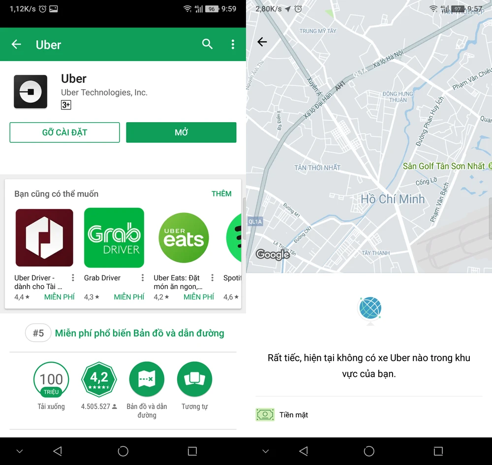 Sáng nay (9-4), khi mở ứng dụng Uber để đặt xe, trên màn hình chỉ hiển thị thông báo “Rất tiếc, hiện tại không có xe Uber nào trong khu vực của bạn”. Tuy nhiên, ứng dụng vẫn hoạt động tại các thị trường khác ngoài Đông Nam Á.