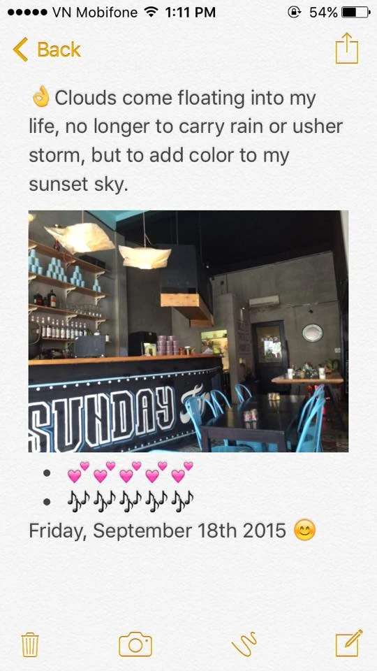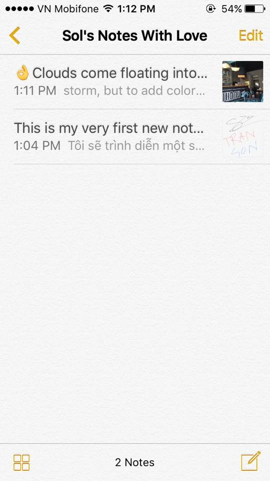 Chúc các bạn có những giây phút vui vẻ bên ứng dụng ghi chú trên chiếc smartphone thân yêu của mình. Còn gì tuyệt vời hơn việc cầm chiếc iPhone lên và ghi lại những dòng suy nghĩ của chúng ta, chụp vài bức ảnh lưu lại trong đó, và thưởng thức li cafe sữa nóng ngắm nhìn đường phố chiều mưa nhỉ!!!