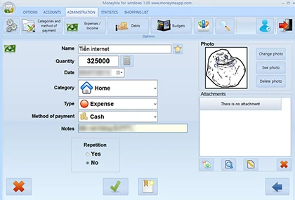 Để ghi lại các khoản tiền thu nhập và chi tiêu, bạn kích vào mục Expenses/Income. Lựa chọn ngày đầu tháng và cuối tháng rồi nhấn vô biểu tượng dấu cộng, đặt tên cho việc chi tiêu, số tiền (Quantity), chọn ngày chi trả. Tại mục Type, bạn lựa chọn 1 trong 2 giá trị là Expense (chi tiêu) hoặc Income (thu nhập, tiền kiếm được), rồi chọn phương thức thanh toán là xong.
