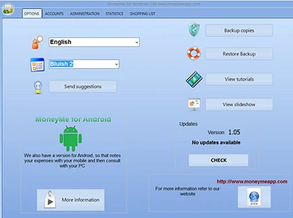 Cuối cùng là thẻ Options, nó cho phép bạn thay đổi chủ đề, ngôn ngữ hiển thị. Ngoài ra, bạn còn có thể sao lưu (Backup copies) và khôi phục dữ liệu (Restore Backup) của mình một cách dễ dàng thông qua các nút tương ứng.