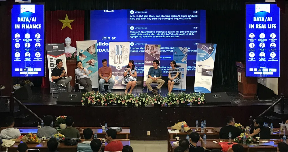 Cuối cùng là phiên thảo luận đầy sôi động về hiện trạng và tương lai của Data/AI và tài chính định lượng: Cả về nghiên cứu, ứng dụng và đào tạo. Phiên thảo luận được điều hành bởi TS Đặng Quang Vinh (ĐH Công Nghiệp TP.HCM), cùng với sự tham gia của các diễn giả và đặc biệt là sự góp mặt của TS Phạm Hoàng Uyên (Trưởng Khoa Toán Kinh Tế, ĐH Kinh tế Luật - ĐHQG TP.HCM, Phó chủ nhiệm chương trình Tài chính tính toán định lượng của Viện JVN - ĐHQG TP.HCM).