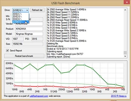 Khi mua một ổ đĩa flash USB có thương hiệu, bạn hoàn toàn không cần phải lo ngại các vấn đề liên quan đến phần cứng, mà thay vào đó, việc bạn cần quan tâm là hiệu suất thật sự của nó so với các thông số được quảng cáo trên vỏ hộp. Lúc này, USBFlashSpeed sẽ là một công cụ thật sự cần thiết để bạn có thể đo được tốc độ đọc và ghi, hay xuất kết quả này lên trang web của chương trình.