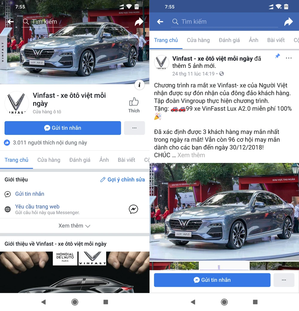 Trước đó không lâu, sau sự kiện ra mắt các mẫu ô tô và xe điện mới, trên Facebook cũng xuất hiện hàng loạt fanpage giả mạo VinFast để tặng xe miễn phí cho người dùng nếu họ Like trang và để lại số điện thoại trong phần bình luận.