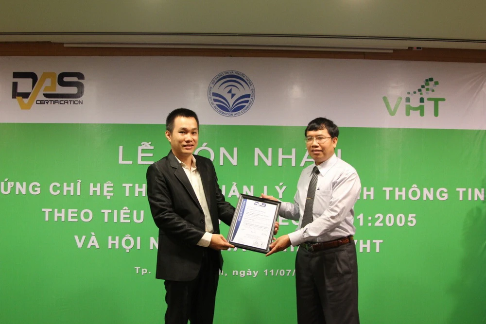 VHT thực hiện triển khai dự án ISO/IEC 27001:2005 từ tháng 06/2013 và hoàn tất việc triển khai, đánh giá và đạt chứng nhận này vừa đúng một năm. Chứng nhận ISO/IEC 27001:2005 này được đánh giá bởi Công ty TNHH Chứng nhận D.A.S Việt Nam là đại diện chính thức và hợp pháp của Tổ chức Chứng nhận D.A.S Vương quốc Anh trên lãnh thổ Việt Nam, là tổ chức chứng nhận có danh tiếng trên toàn cầu được UKAS Vương quốc Anh công nhận.