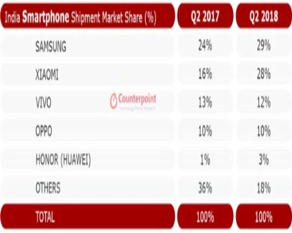 Theo khảo sát của Counterpoint Research, trong nửa đầu năm 2018, Apple bán ra chưa được 1 triệu thiết bị iPhone tại Ấn Độ. Con số này chiếm chưa tới 2% của tổng số hơn 60 triệu thiết bị ước tính được bán ra tại đất nước đông dân thứ nhì thế giới. Trong khi đó, Xiaomi ấn tượng với 19 triệu thiết bị và Samsung với 17,4 triệu smartphone Galaxy bán ra cùng thời điểm.