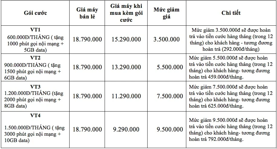 Đặc biệt, năm nay Viettel còn triển khai chương trình trợ giá với mức giảm tới 9,5 triệu đồng. Chương trình được áp dụng cho khách hàng hòa mạng Viettel trả sau mới hoặc chuyển đổi từ thuê bao trả trước Viettel sang trả sau.