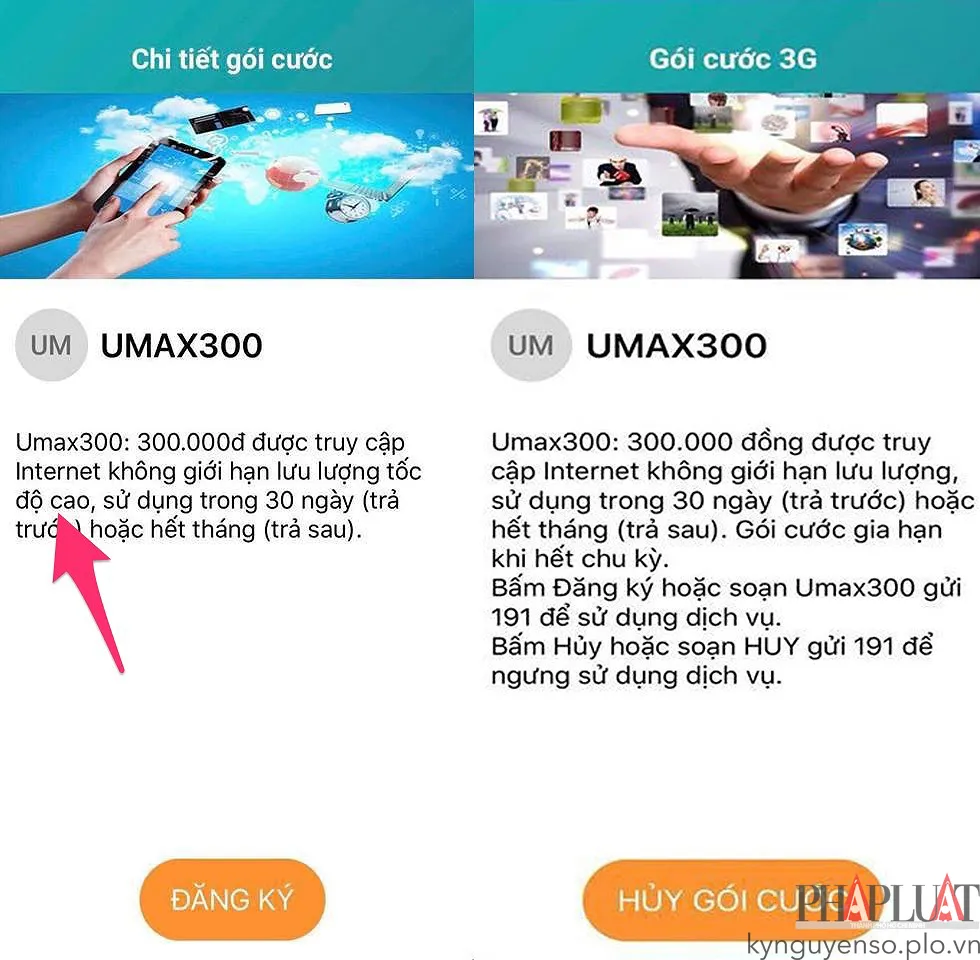 Trước và sau khi bị người dùng phản ánh lập lờ về thông tin gói cước UMAX300.