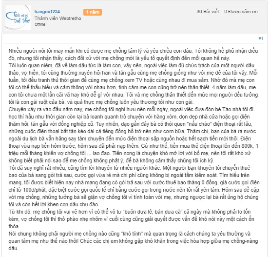 Chia sẻ của Ngọc Hà trên một diễn đàn cho các bà mẹ bỉm sữa