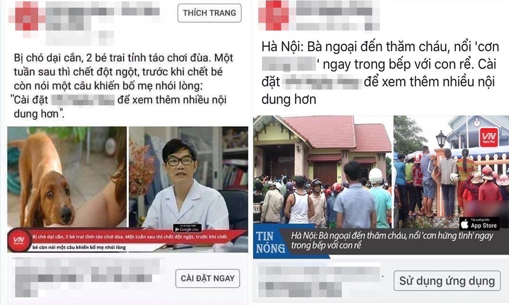 Chưa dừng lại ở đó, dạo gần trên Facebook còn liên tục xuất hiện các mẩu quảng cáo “bẩn” với tiêu đề và nội dung gây sốc, chủ yếu dụ dỗ người dùng cài đặt ứng dụng hoặc mua sản phẩm. Đơn cử như một trang fanpage chuyên về tổng hợp tin tức đã chạy quảng cáo trên Facebook với nội dung đại loại như sau: “Bị chó dại cắn, hai bé trai tỉnh táo chơi đùa. Một tuần sau thì chết đột ngột, trước khi chết bé còn nói một câu khiến bố mẹ nhói lòng: Cài đặt ứng dụng ABC để xem thêm nhiều nội dung hơn”.