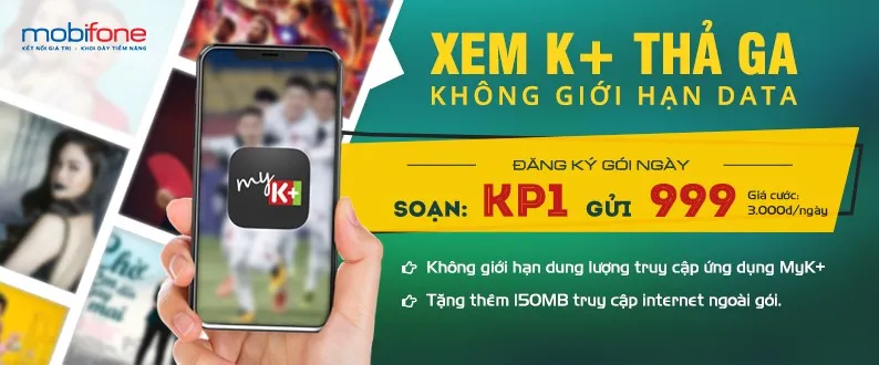 Khách hàng là các thuê bao MobiFone khi đăng ký sử dụng một trong các gói cước K+ Data sẽ được miễn phí data để trải nghiệm các nội dung đặc sắc như giải đấu Ngoại hạng Anh; La Liga Tây Ban Nha; toàn bộ hệ thống giải quần vợt ATP gồm ATP Masters 1000, 500, 250, ATP World Tour Finals; các giải golf thuộc PGA Tour hay những Phim Việt mới nhất sau chiếu rạp cùng các phim truyền hình nổi tiếng và các nội dung giải trí khác được phát trực tiếp trên các kênh K+1, K+PM, K+NS, K+PC...