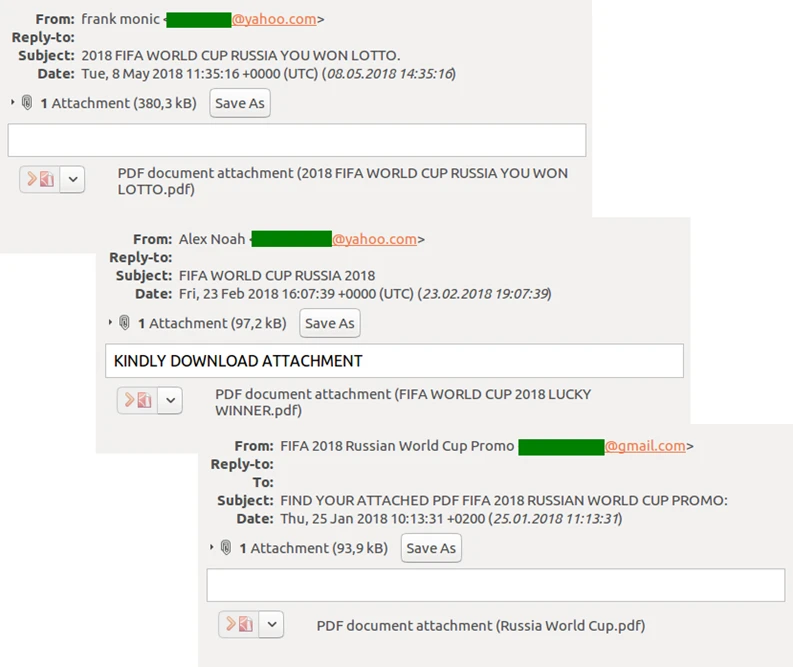 Các sự kiện lớn như FIFA World Cup luôn tạo cơ hội cho kẻ gian tấn công những người dùng thiếu cảnh giác. Vé xem World Cup chỉ được bán trực tiếp trên website của FIFA và phải qua nhiều thủ tục phức tạp vì lý do bảo mật. Đặt vé qua ba bước và mỗi người chỉ được mua một vé. Còn vé khách mời là trường hợp ngoại lệ, cho phép người mua mua thêm tối đa ba vé. Mặc dù quy trình khá phức tạp nhưng kẻ gian vẫn biến điều này thành lợi thế cho chúng.