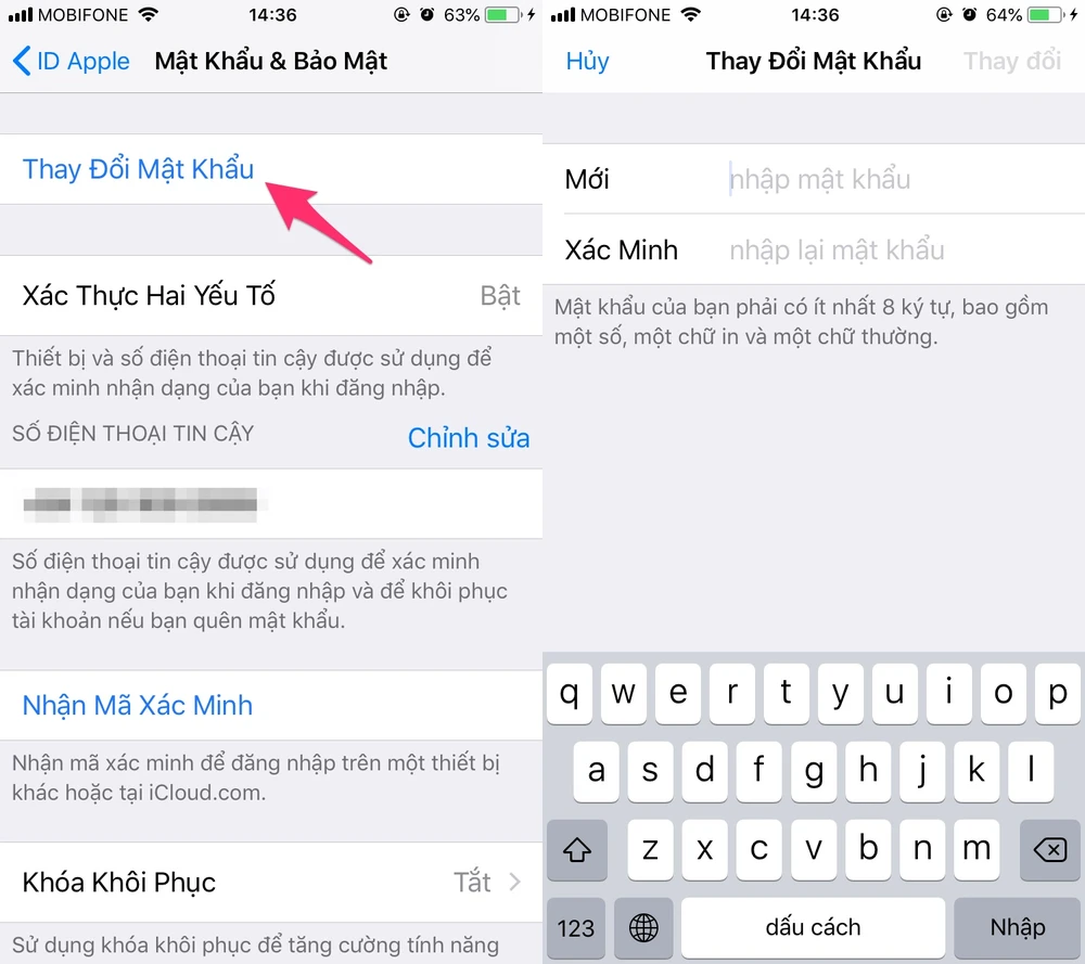 Trường hợp bạn đang sử dụng chính số điện thoại trên iPhone để nhận mã xác thực hai lớp, bạn cần thực hiện thêm một bước nữa, đó là bật chức năng giới hạn thay đổi mật khẩu trên iPhone.
