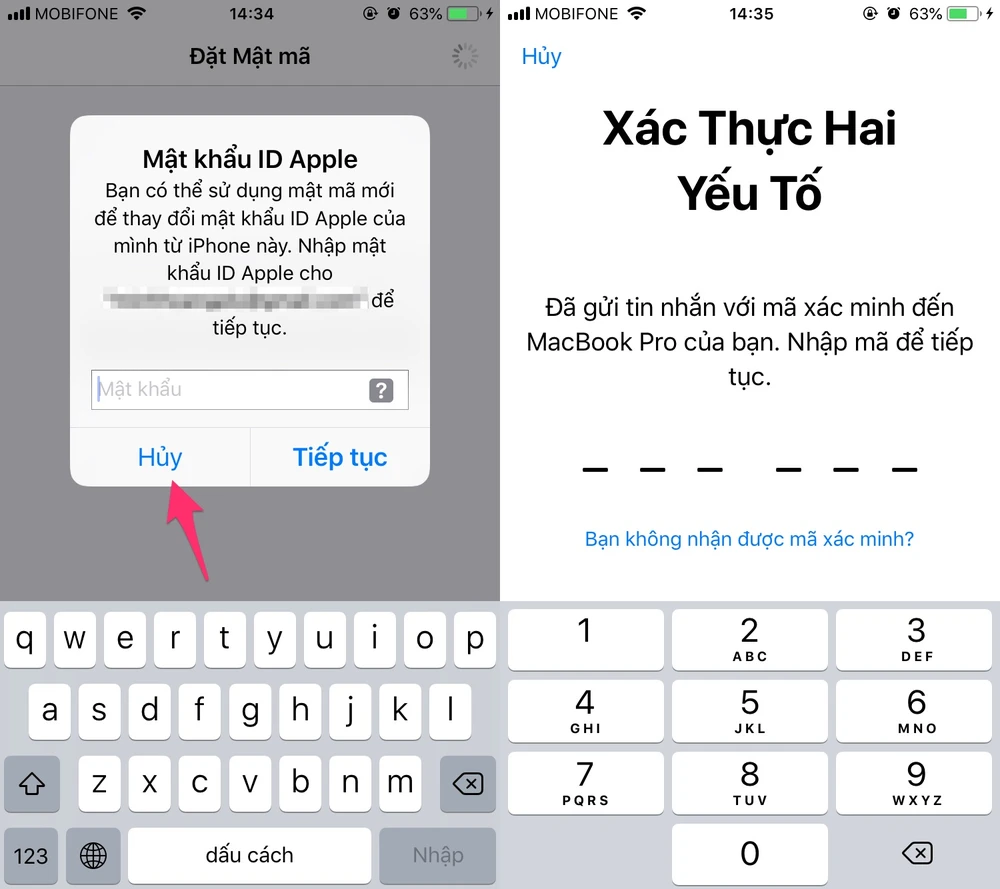 Không đồng ý khi Apple yêu cầu sử dụng mật khẩu khóa màn hình để thay đổi mật khẩu Apple ID. Ảnh: MINH HOÀNG