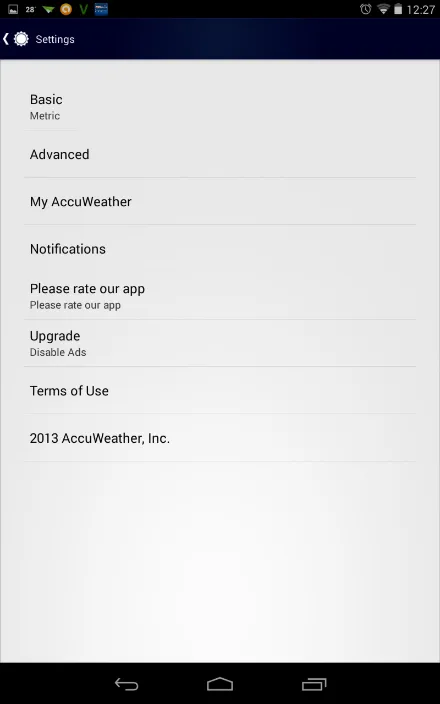 Để thêm vào một vị trí mới, bạn nhấn vào tên của vị trí hiện tại ở góc trái và chọn Add Location. Mặc định AccuWeather sẽ sử dụng độ F làm đơn vị hiển thị nhiệt độ, nếu muốn thay đổi, bạn di chuyển vào phần Settings > Basic > Metric. Tương tự như vậy, các mục còn lại như Advanced sẽ cho phép bạn thay đổi những đơn vị tính toán về sức gió, vận tốc, định dạng ngày giờ và nhiều thứ khác.