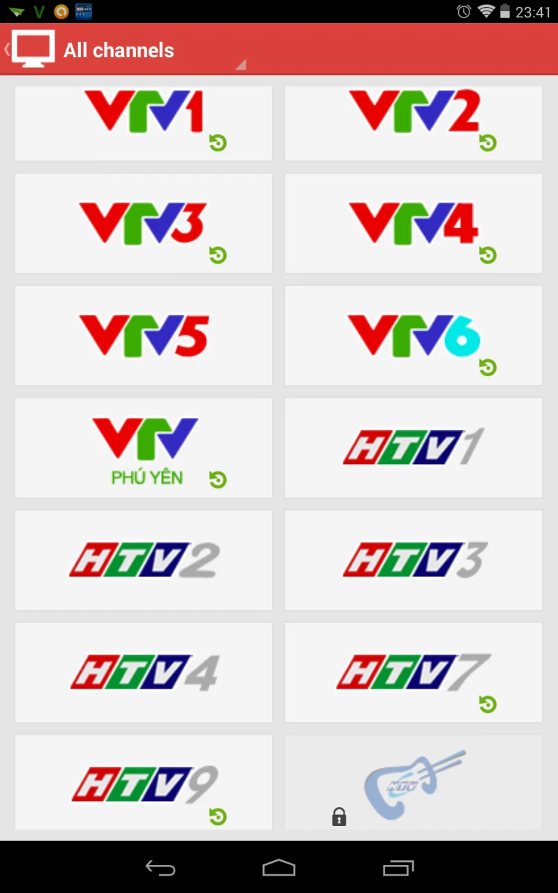 Lưu ý: đối với những kênh có biểu tượng mũi tên xoay vòng màu xanh thì bạn có thể xem lại các chương trình trước đó. Và ngược lại, nếu có biểu tượng ổ khóa, nghĩa là bạn cần phải nâng cấp lên gói Silver (phí 1.200đ/ngày).